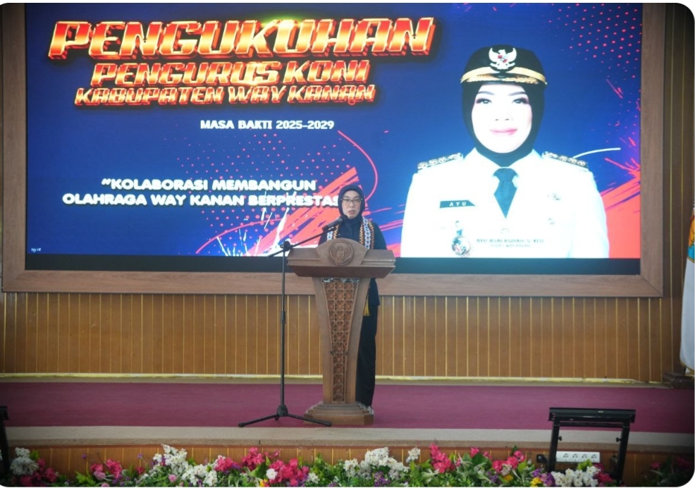 Way Kanan – Bupati Way Kanan Ayu Asalasiyah, S.Ked., menghadiri Pelantikan Pengurus Komite Olahraga Nasional Indonesia (KONI) Kabupaten Way Kanan Masa Bakti 2025–2029 yang digelar di Gedung Pusiban Pemerintah Kabupaten Way Kanan, Rabu (11/02/2026).